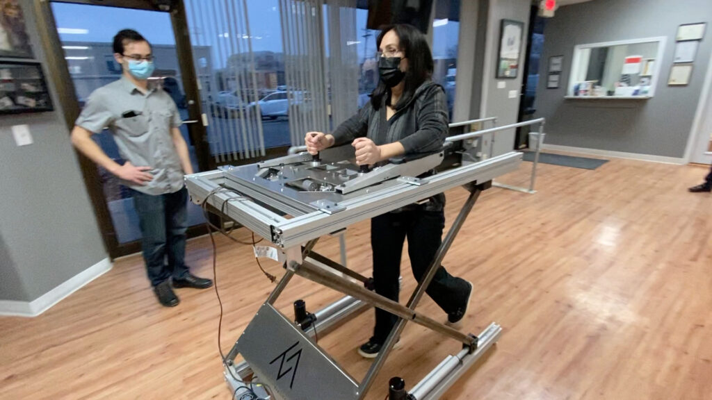 It was a day to remember for below-knee amputee Amy Silverman who walked gracefully across the floor with the gait trainer during a prototype review with the Enlighten Mobility team at David Rotter Prosthetics.