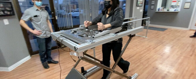 It was a day to remember for below-knee amputee Amy Silverman who walked gracefully across the floor with the gait trainer during a prototype review with the Enlighten Mobility team at David Rotter Prosthetics.